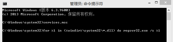 for %1 in (%windir%\system32*.dll) do regsvr32.exe /s %1